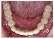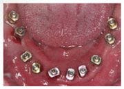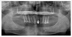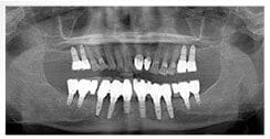 王先生遠從台中縣后里而來,正值中壯年,但是下顎已經全部無牙,必須配戴全口假牙,由於全口假牙咬合力量不足,並且戴起來不自然不舒適,常因為大笑或在吃東西時就面臨脫落的尷尬,經由友人推薦前來本診所求診。