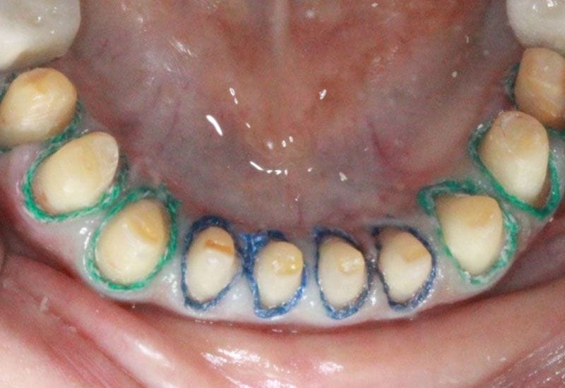 接著,陳柏均醫師以此蠟型高度為病人進行欲重建牙齒的修磨和臨時假牙,病患之後將配戴此臨時假牙做約1-3個月的試戴觀察。