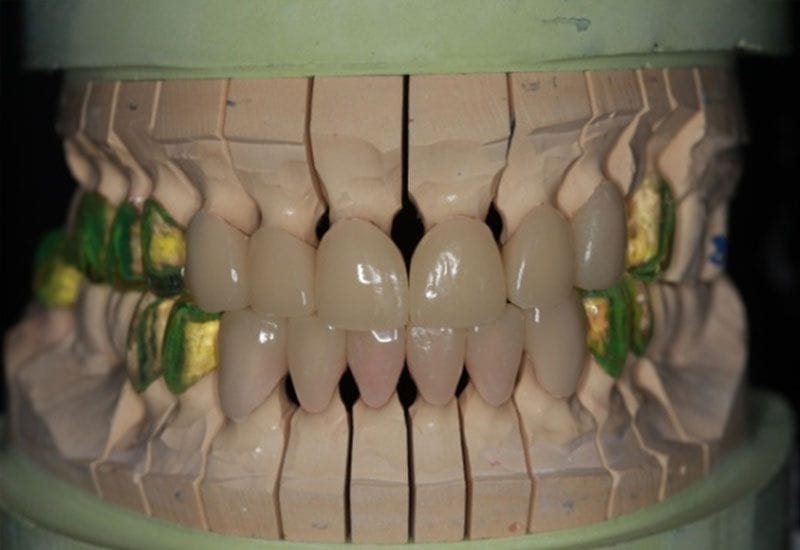 之後,模型以電腦掃瞄 電腦分析設計 電腦磨出(CAD CAM) 即Computer aided design/Computer aided manufacturing等步驟 製作精密且耐用的氧化鋯基底全瓷冠,由於技師可以在電腦上分析並設計假牙的外型與咬合關係,大大節省與牙醫師臨床的調整且大大改善了整體全口假牙重建的精密度。