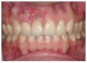 陳小姐在本診所經過矯正治療後,想要讓排列整齊的牙齒更漂亮,於是將舊有不美觀的假牙換掉,以更優質的全瓷冠人工植牙重建,同事們都說她簡直像變了一個人,不但有漂亮的瓜子臉,牙齒更是自然漂亮,完全看不出來有做過假牙,這就是全瓷冠植牙的魔力。
