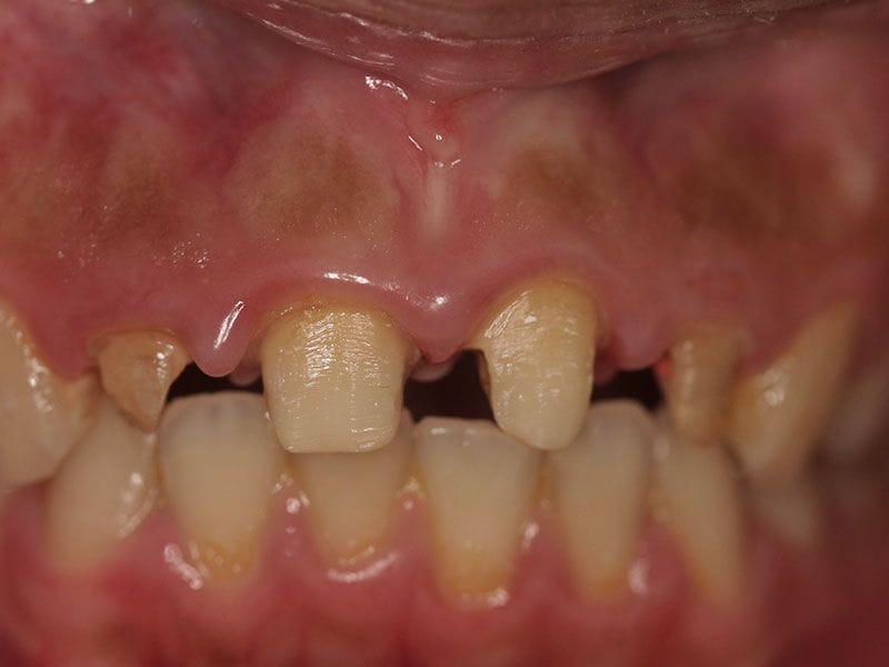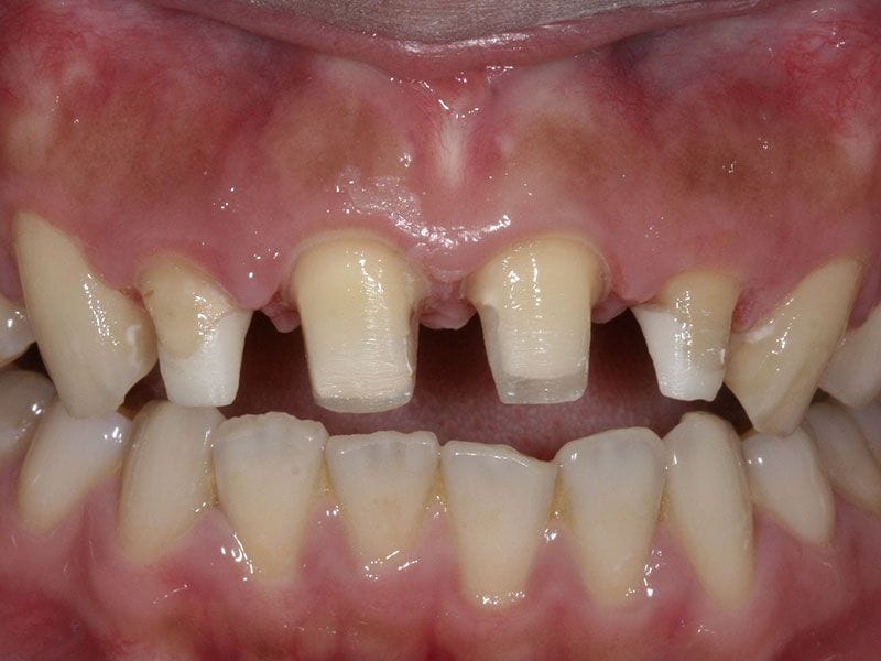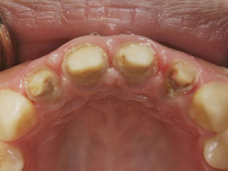 氧化鋯全瓷冠心根柱(Cosmo post and core) + 玻璃纖維冠心根柱 (glass fiber post and core) + 牙冠增長術 + 齒槽骨修型術 + 全瓷冠 (all ceramic crowns)